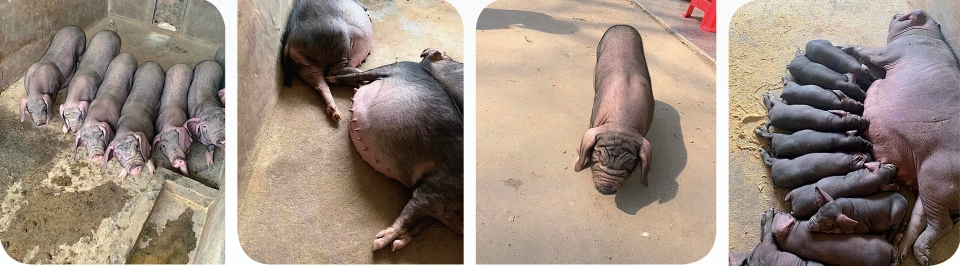 太湖母猪是世界上产仔数最多的猪种,享有“国宝”之誉,是我国猪种系列里产仔数多的著名 地方品种。太湖猪体形中等,背毛稀疏,黑或青灰色,四肢、鼻均为白色,腹部紫红,头大额宽, 额部和后躯皱褶深密,耳大下垂,形如烤烟叶。四肢粗壮,腹大下垂,臀部稍高,乳头 10 ~ 12 对, 最多 14.5 对。依产地不同分为二花脸、梅山、枫泾、嘉兴黑和横泾等类型。