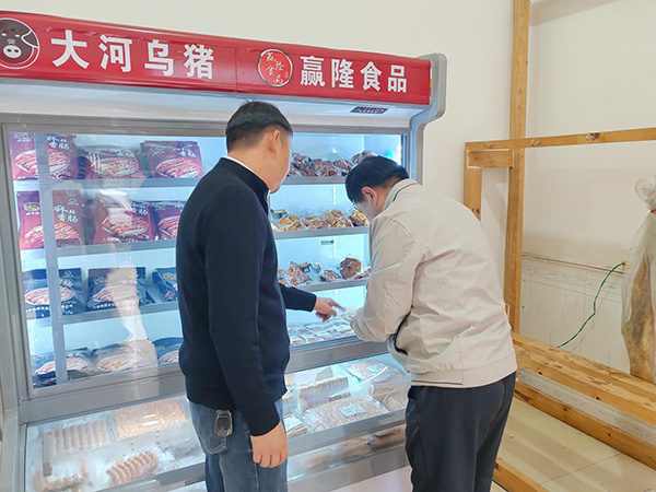 傍晚,我们有顺路走访另外一家专卖店,体验大河乌猪销售。