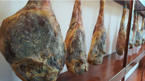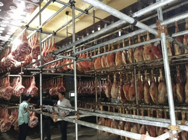 | 从火腿晾晒开始,火腿在这个车间存放时间最长。这里温度控制格外重要。 |